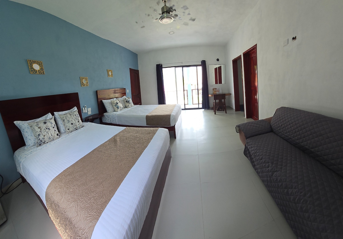 A Villa Marbella é uma propriedade com todos os confortos e comodidades, com três apartamentos num novo conceito de alojamento em Bacalar. Temos um Clube de Praia muito próximo que tem comida, bebidas e serviço de aluguer de equipamentos aquáticos. Este apartamento tem 2 quartos para até 6 hóspedes. As áreas comuns são a piscina, a palapa, o jardim e o miradouro no terceiro andar.
