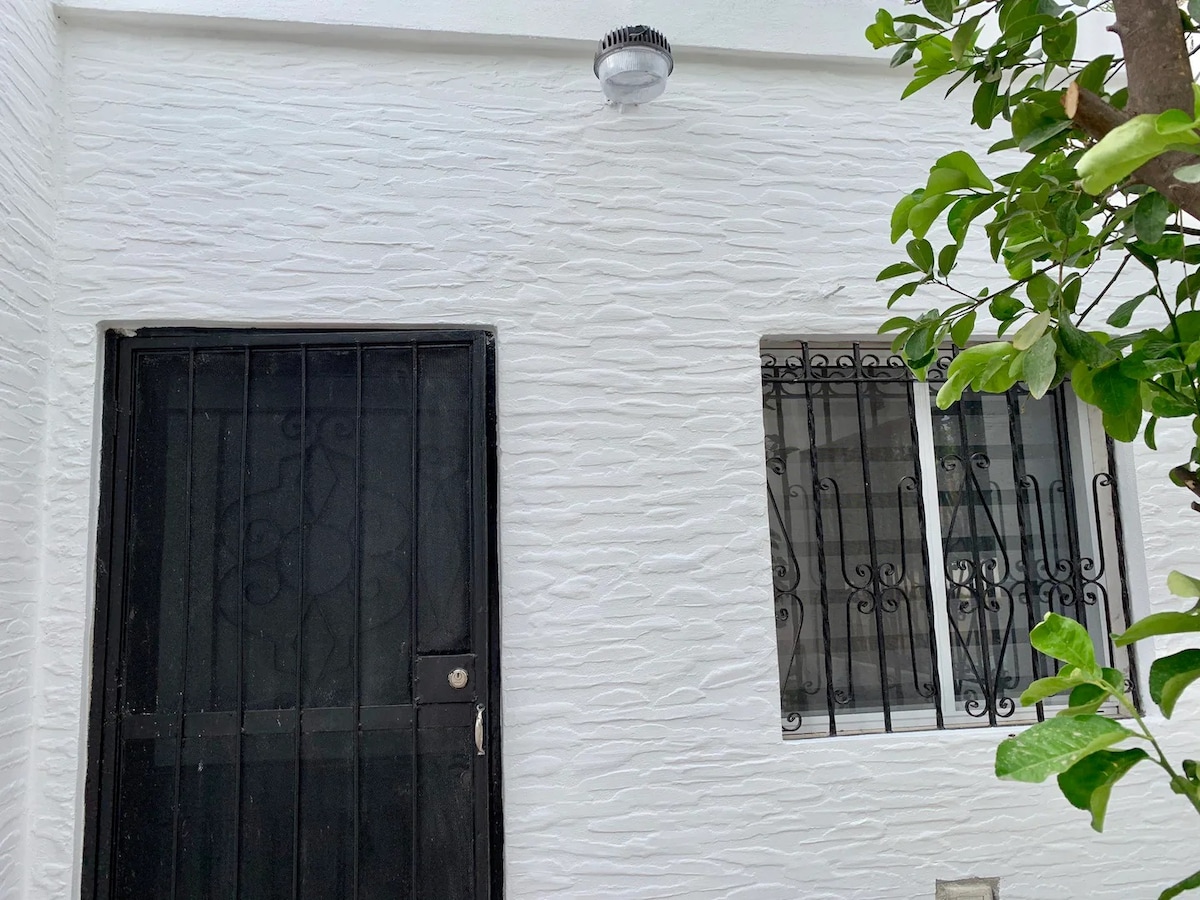 Ubicado en el centro de la ciudad a una cuadra del Hospital San Jose. Cuenta con baño privado dentro del departamento y esta equipado con cómoda cama matrimonial de memoryfoam, cocineta, internet de buena calidad, smart TV Roku ... Ideal para viajes de trabajo(facturamos). Contamos con servicio de transporte(costo extra).