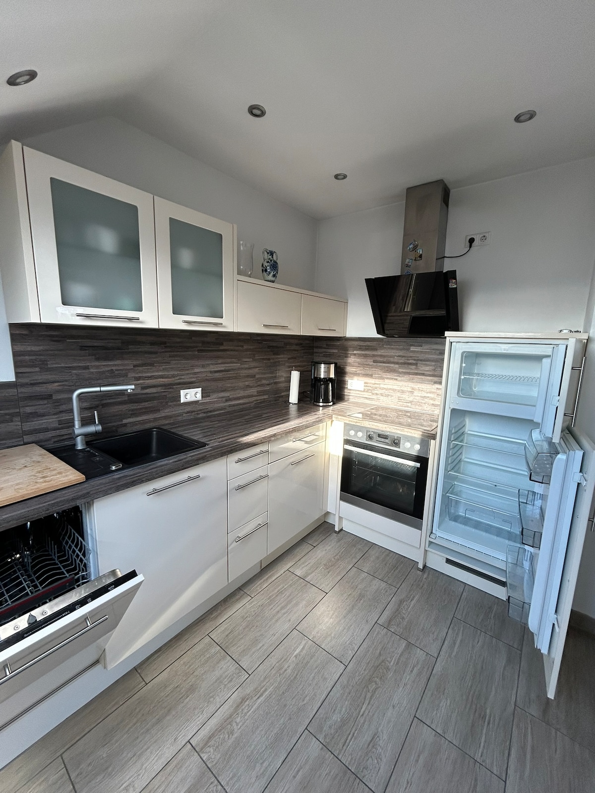 Nosso apartamento novo está localizado no andar térreo, no subsolo. Tem 54 m² e está totalmente equipado. O apartamento tem um quarto, banheiro, uma bela sala de jantar e uma sala de estar com um sofá-cama. O espaçoso terraço com lounge e área de estar também pode ser usado, incluindo um grande jardim com estrutura de escalada para as crianças. Há muitas atrações turísticas na nossa região, como a Legoland e o Museu Steiff. O apartamento não é adequado para trabalhadores ou montadores.
