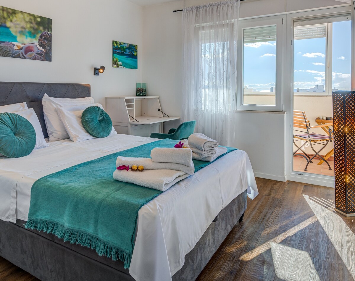 Apartamento moderno com terraço no 4º andar, está localizado perto de todos os principais lugares da cidade. O centro histórico da cidade, a estação de autocarros e o porto de ferry ficam a uma curta distância a pé. As praias bem conhecidas da cidade estão a uma curta distância a pé de si. Também em emergências, o hospital local, bem como uma farmácia de emergência, estão nas proximidades. O apartamento oferece conforto, luxo e privacidade. Um ambiente acolhedor permite umas férias relaxantes