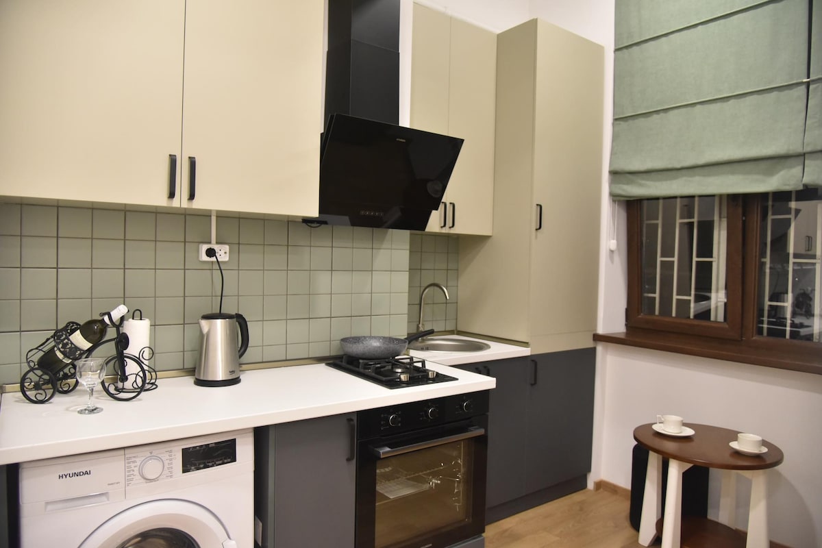 The apartment is located in one of the central, historic districts. You will stay in a typical Georgian old building. The property is studio-style and has a cozy balcony. The house is old but fully renovated and designed by me. The apartment is bright and comfortable, with a full bathroom (4 sq. m) and a kitchen. The apartment offers self check-in. You will receive detailed instructions the day before your arrival, making check-in smooth and easy. I hope you will enjoy your stay. .
