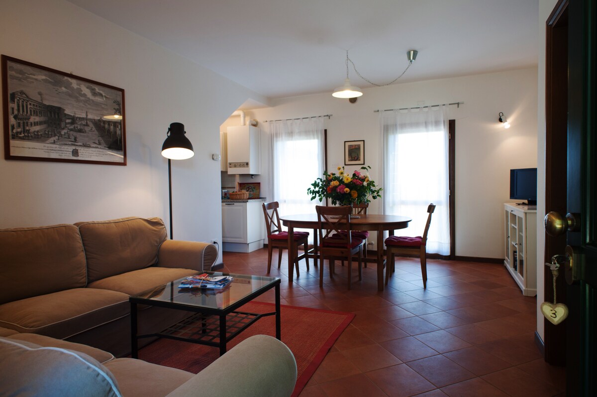 Alojamento magnífico com acabamentos de alta qualidade localizado na histórica Piazza delle Erbe. O apartamento é composto por: - Sala de estar em plano aberto com mesa de jantar e sofás - Cozinha moderna e totalmente equipada. - Área de relaxamento com sofá e TV - Mezanino com secretária - 2 casas de banho, uma com cabine de duche em vidro e outra com banheira - 2 quartos duplos com camas queen-size - 1 quarto duplo com cama king-size. O apartamento fica a apenas 30 minutos de comboio de Veneza.