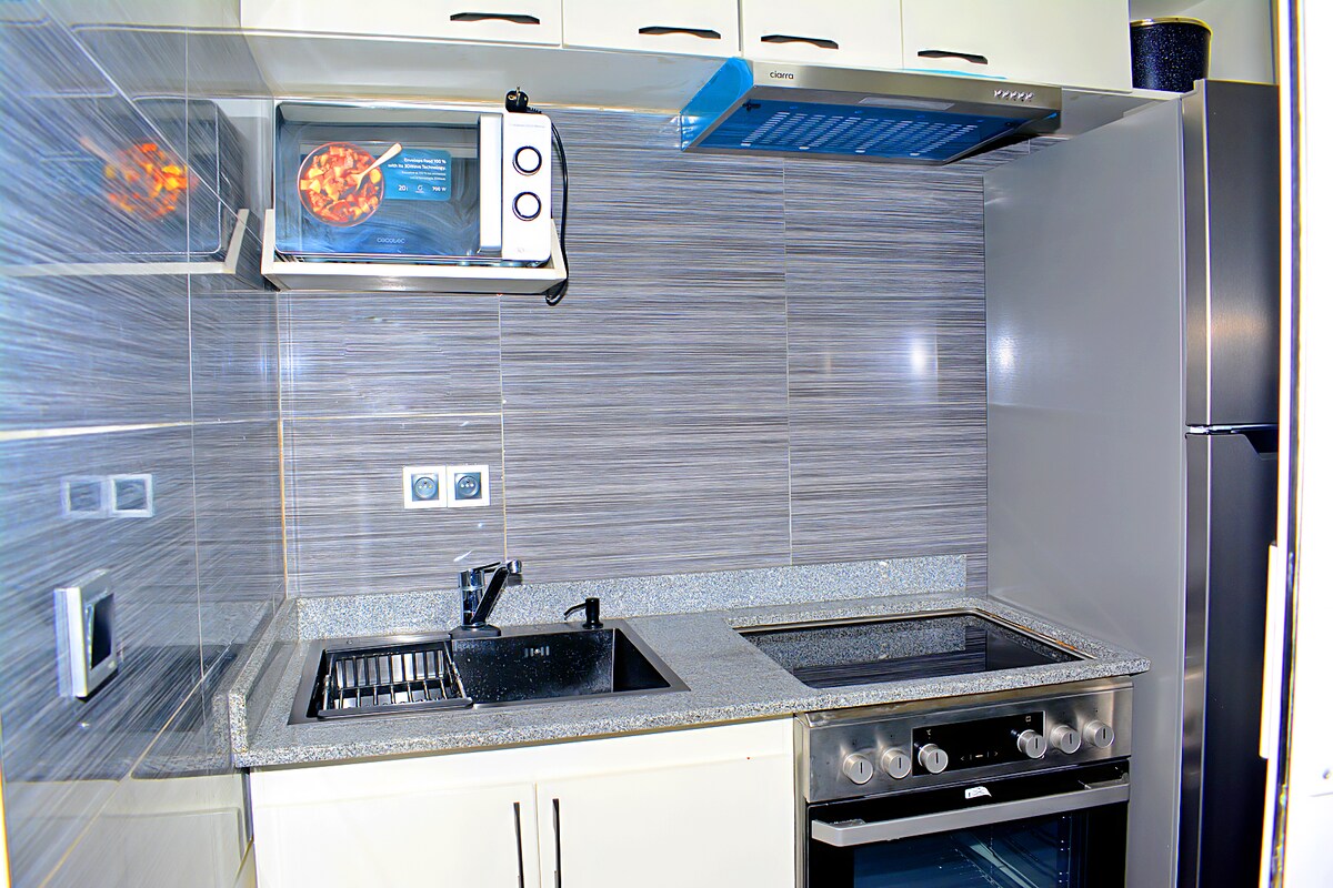 Apartamento mobilado muito elegante e moderno, composto por dois quartos de sala de estar, com terraço, instalações sanitárias embutidas, cozinha totalmente equipada, aquecimento de água. Todos os quartos têm ar condicionado. Outras comodidades disponíveis: Wi-Fi, TV com acesso ao YouTube, vários canais de TV, filmes e séries (Netflix, vídeo Prime). Acesso à garagem para um veículo. Acesso ao terraço para um momento relaxante. Aeroporto a 7 minutos e centro da cidade a 15 minutos