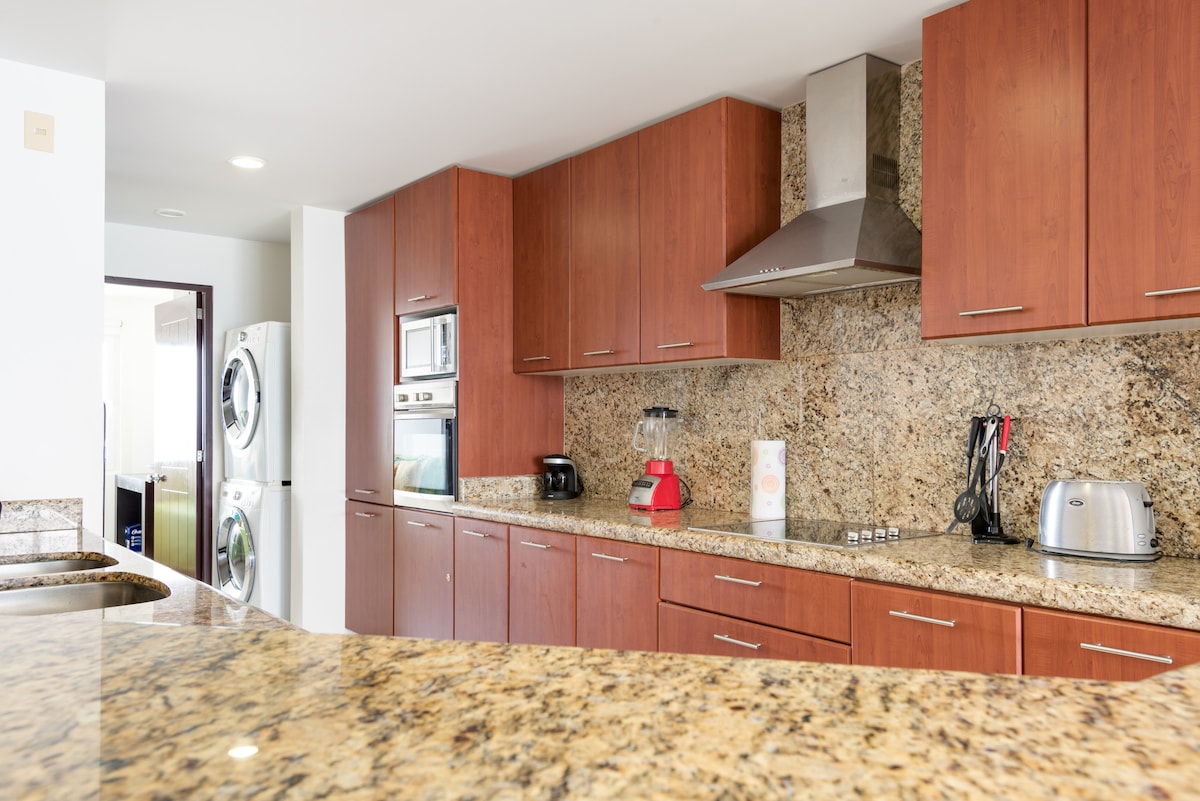 Acorde com vistas para o mar no Zantamar 402B, um refúgio elegante com 2 quartos em La Cruz. Comece as suas manhãs na varanda privada e descontraia junto às piscinas ou na praia, que fica a poucos passos de distância. Desfrute do conforto do ar condicionado em todo o espaço, de uma cozinha totalmente equipada, de máquina de lavar e secar roupa no apartamento e de Wi-Fi rápido. Com um ginásio, lugar de estacionamento atribuído e segurança 24 horas por dia, 7 dias por semana, tem aqui tudo o que precisa para uma estadia relaxante e sem preocupações.