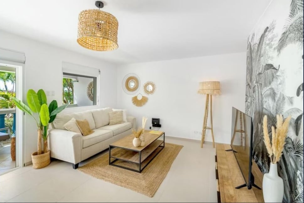 Esta vila reformada de 110 m², localizada na costa oeste da ilha, na residência de Terres Basses, com segurança, a 5 minutos a pé da praia de Baie Longue, destaca-se pela sua atmosfera pacífica. Composta por 2 quartos bem iluminados com banheiros, uma grande cozinha e 2 terraços, pode acomodar 4 viajantes que buscam tranquilidade e calma. Com um grande jardim e piscina privativa, oferece um momento privilegiado para uma estadia no Caribe.