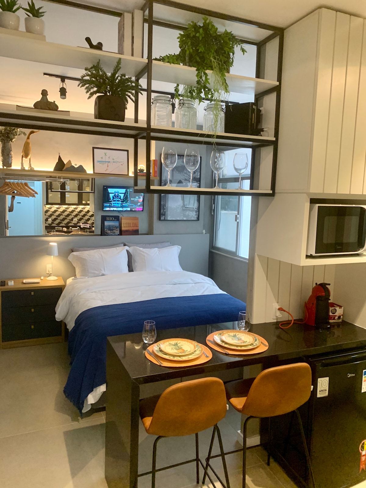 Studio moderno, decorado e totalmente equipado, no melhor ponto de Ipanema — a apenas dois quarteirões da praia. Prédio com elevador e portaria 24h, seguro e bem localizado, perto de restaurantes, metrô, cafés e todo o comércio local. Desfrute da verdadeira vida carioca: café da manhã na esquina, mergulho rápido antes do trabalho ou do ponto turístico e um pôr do sol inesquecível no Arpoador. ✨ Se tiver dúvidas, envie uma consulta — senão, reserve agora e sinta-se um verdadeiro carioca!