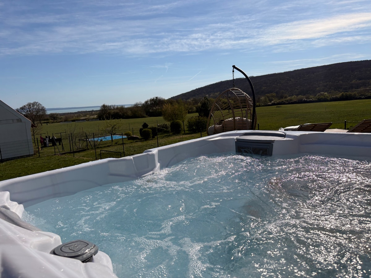 A Csipetnyi Chill Guesthouse é uma verdadeira experiência de luxo de retiro no abraço da natureza, onde o interior elegante e os confortos modernos criam a harmonia perfeita. A casa de hóspedes é a escolha ideal para casais, grupos de amigos ou até famílias mais pequenas que querem desfrutar de relaxamento em condições premium, durante todo o ano. Principais características: 3 quartos separados 2 casas de banho. 2 cozinhas equipadas Área de bem-estar privada com banheira de hidromassagem e sauna Belo panorama do Lago Balaton