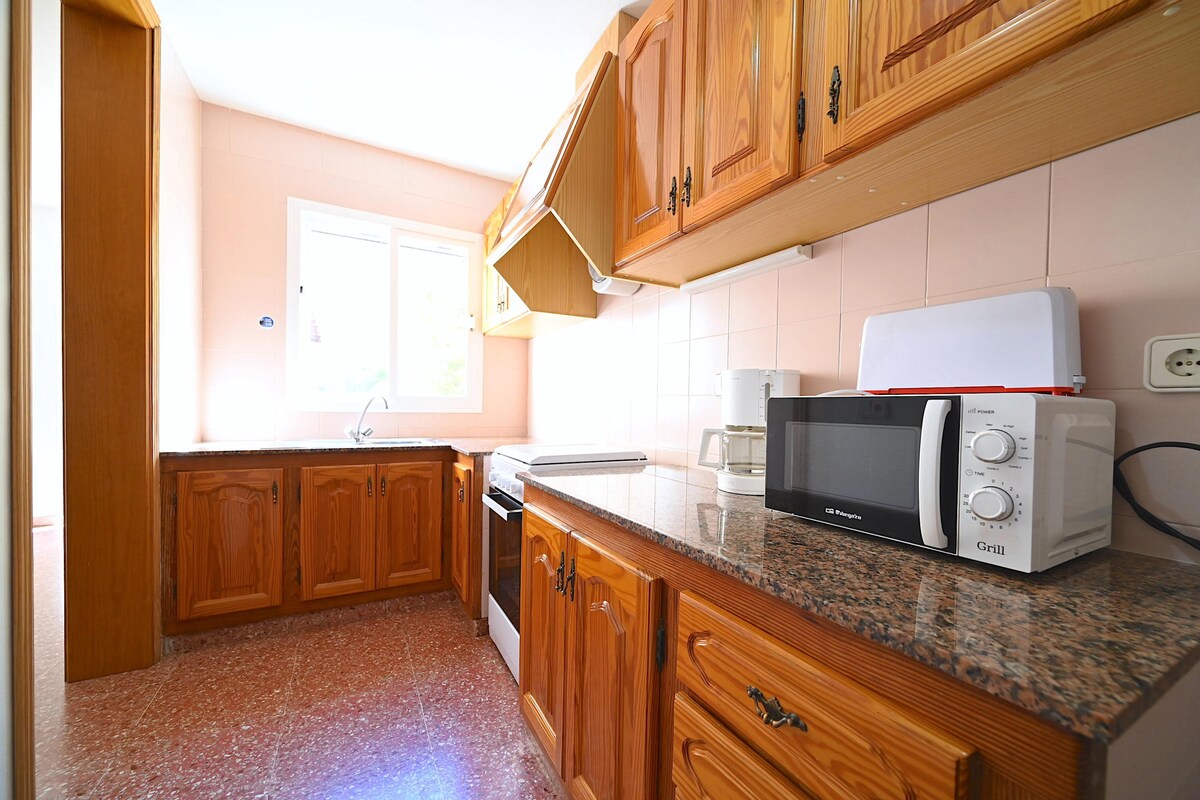 Bungalow "de luxo" em complexo residencial com acesso directo à praia de Cala Gran. A menos de 5 minutos a pé de áreas de lazer e restaurantes. Perfeitamente equipado e decorado com amor. Wifi. ar condicionado. Estacionamento gratuito na rua. Licença de Turista A / 588 Check-in a partir das 15h Check-out 10:30 Somos energeticamente sustentáveis, contratamos empresas de serviços elétricos que só usam painéis solares para obter energia, desta forma ajudamos o planeta.