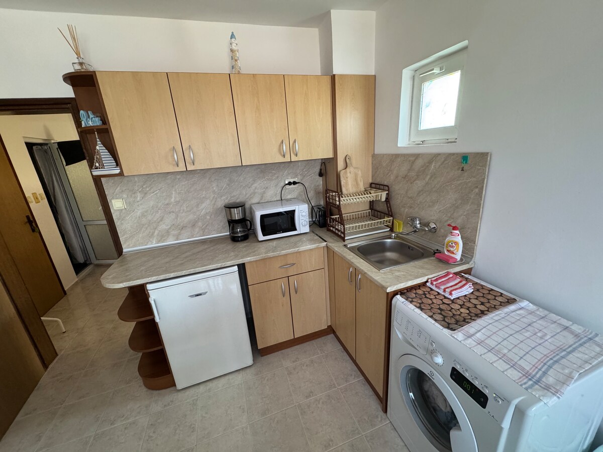 Apartamento acolhedor e luminoso numa rua tranquila e pacífica. Tem sala de estar, cozinha, área de refeições, sofá-cama, quarto, casa de banho com WC e terraço. O apartamento tem a sua própria entrada privada. É proibido fumar! O apartamento fica a 7 km de Centar.plage e a 9 km da praia de Kraimorie. O Aeroporto de Burgas fica a 17 km. Nas proximidades estão as linhas rápidas de transportes públicos, lojas e estabelecimentos. Relaxe neste espaço tranquilo para umas férias mais longas e um retiro curto