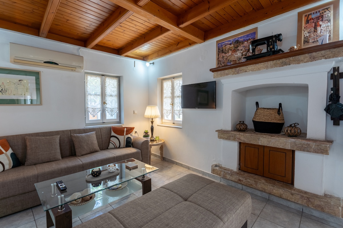 Casa grega de pedra agradável e tranquila com jardim