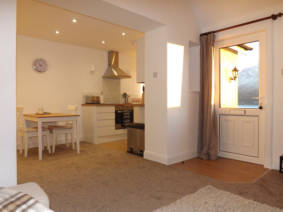 Bela localização à beira do lago com jardim e vista para a praia pedregosa. Em uma localização deslumbrante cercada por montanhas, lagos e florestas. Ótimo para casais e famílias com crianças. Perfeito para caminhantes e turistas. Lugar ideal para relaxar e descontrair. Esta propriedade é adjacente ao 'The Saddle', que é uma propriedade de um quarto que acomoda 2 pessoas, caso você precise de acomodações extras. Este é um lugar perfeito para ficar para explorar as Terras Altas e a Ilha de Skye.