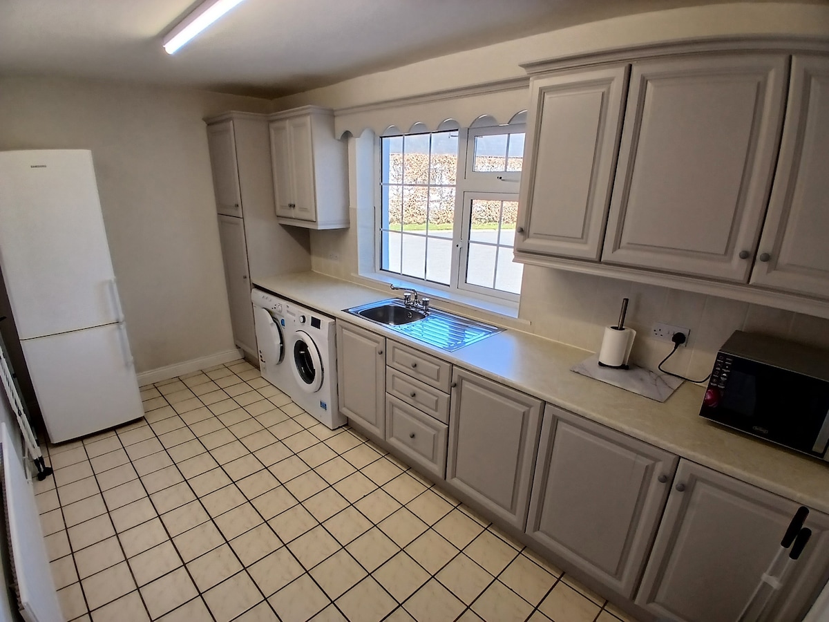 Esta acomodação elegante é perfeita para viagens em família e em grupo. Localização tranquila da fazenda a 1 km da bela vila de Grangecon, que abriga o Moores Pub & Grangecon Kitchen, a 10 minutos de carro de Rathsallagh, a 30 minutos de Kildare Village, Whitewater Shopping Centre Newbridge, Blessington Lakes, Curragh Racecourse & Punchestown Racecourse, a 50 minutos de Glendalough. 75 km do Aeroporto de Dublin. Oferece todos os confortos modernos e estilo de uma nova construção com cozinha bem equipada, lavanderia e sala de arrumação