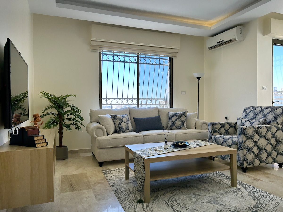 Welcome to your home away from home! My goal is to make your stay as comfortable and memorable as possible. Enjoy this calm, stylish space in the heart of the city of Amman. The apartment is located in a quiet and peaceful neighbourhood. It features a cozy and inviting atmosphere, with comfortable furnishings, tasteful decor, and plenty of natural light. For the security of our guests and the safety of our home, we have Front exterior security camera