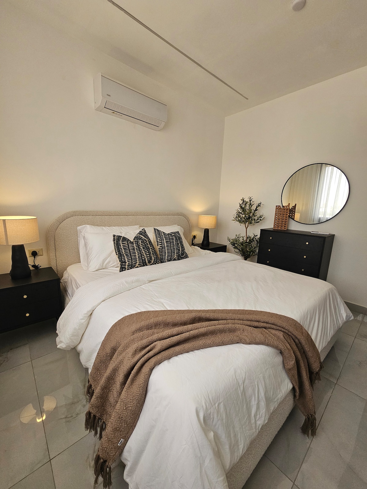 Bem-vindo ao nosso apartamento moderno e totalmente automatizado no coração de Amã. Com uma paleta de cores calmante, integração com Alexa e uma localização privilegiada, nosso santuário urbano oferece conforto e conveniência. Desfrute de fácil acesso a atrações locais, cafés e comodidades em uma área bem servida. Nosso espaço totalmente equipado oferece um retiro tranquilo para viajantes de negócios ou lazer que procuram uma casa elegante longe de casa.