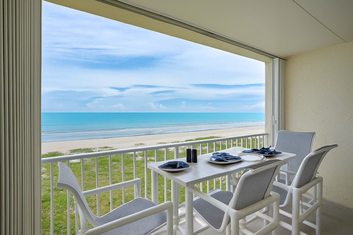 A poucos passos da areia! Suíte de luxo e espaçosa de 1 quarto e 1 banheiro. Vistas deslumbrantes do mar de todos os ângulos, incluindo deslizador de vidro triplo, varanda e janelas de quarto de grandes dimensões! Veja e sinta lançamentos de foguetes da varanda privativa. Perfeito para aventureiros aquáticos ou amigos próximos. Decorado com bom gosto e recentemente renovado, espere uma localização idílica para diversão na água com luxo para até 4 hóspedes Perto da Disney/Aeroporto de Orlando, Centro Espacial Kennedy, Port Canaveral, Cocoa, Melbourne