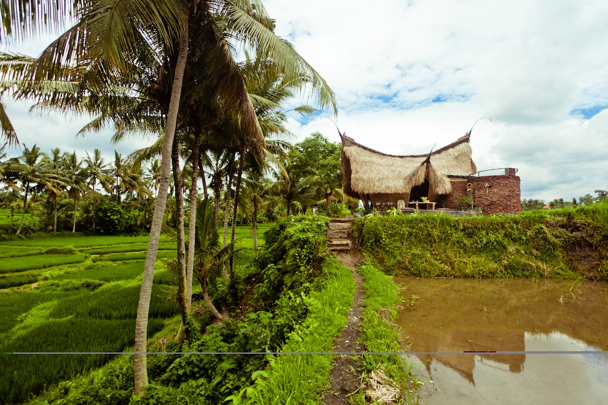 Casa de um quarto com design minimalista, com vista para os campos de arroz. Banheiro privativo com água quente e fria com forte pressão. A casa anexa cozinha aberta com copa e utensílios básicos de cozinha. Pequeno jardim tropical com chuveiro ao ar livre, uma piscina privativa deslumbrante com terraço. Localizado a 15 ou 20 minutos a pé do Centro de Ubud, Palácio, Mercado e Floresta dos Macacos. Desfrute de café da manhã flutuante à beira da piscina, é especial a pedido