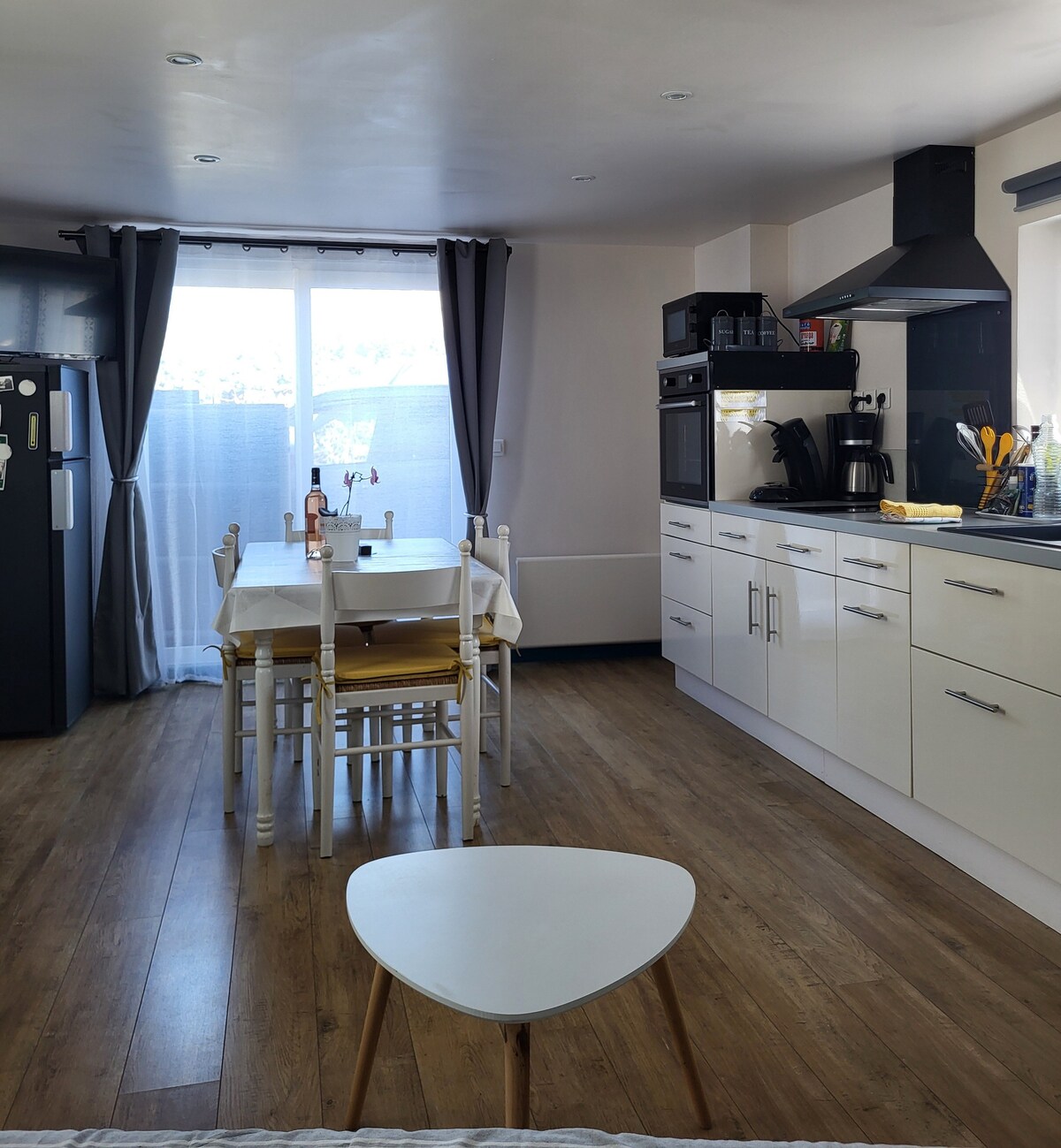 No fundo de uma aldeia, tranquila, de frente para a natureza, está a nossa casinha , "Kergui" para o intimista. Luminoso e cuidadosamente decorado, vai encantá-lo. No rés-do-chão, grande sala de estar e cozinha totalmente equipada. Um quarto (cama queen size) e a sua casa de banho com WC. No 1º andar, zona de relaxamento mezanino + WC da casa de banho, bem como um quarto (cama king size)e canto de secretária + 1 quarto pequeno com 2 camas de 80. Roupa de cama fornecida (capas de edredão, toalhas...)