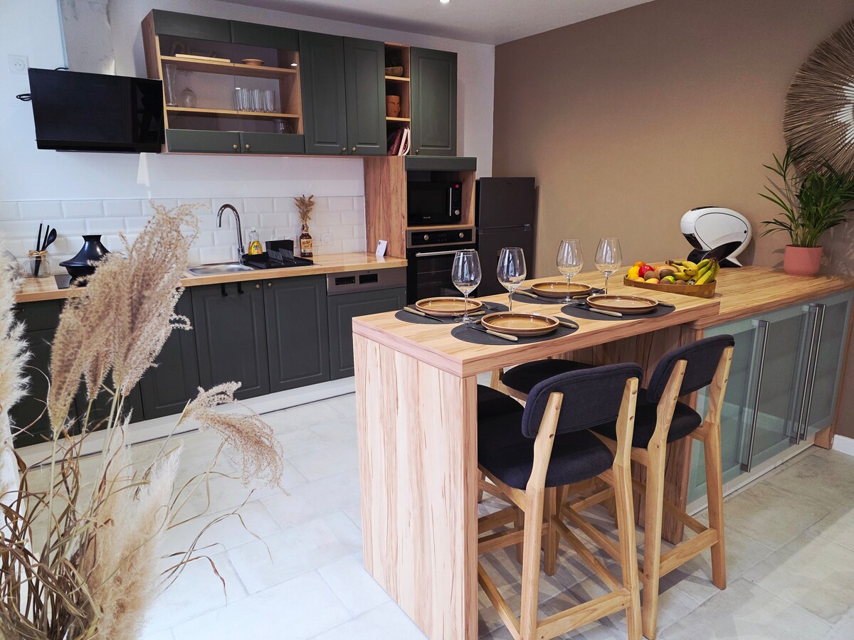 Damos-lhe as boas-vindas a Bannalec! Instale-se neste apartamento concebido para lhe proporcionar todo o conforto de que necessita. Este apartamento agradável vai permitir-lhe desfrutar plenamente da sua estadia. O alojamento pode acomodar 4 adultos, um bebé (berço dobrável fornecido) e até uma criança graças a uma nova poltrona que pode facilmente ajudar. 🙂 Roupa de🛏️ cama e toalhas fornecidas para uma estadia sem preocupações. (excluindo aquecedor e cama dobrável) 🕒 Check-in depois das 15h 🕚 Check-out até às 11:00