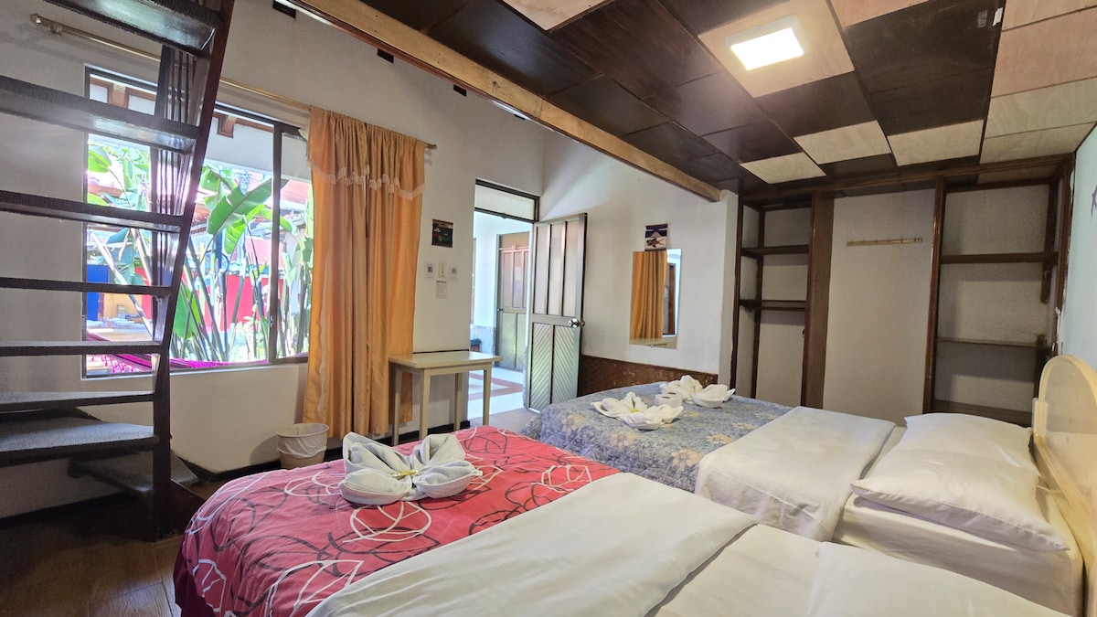 Inviting double room ideal for travelers who want comfort without overspending. Bathroom is shared and kept exceptionally clean. Guests enjoy access to wide-open grounds, rustic design, relaxing common spaces, and convenient parking. Close to Baños’ most popular destinations while offering a peaceful retreat surrounded by nature.