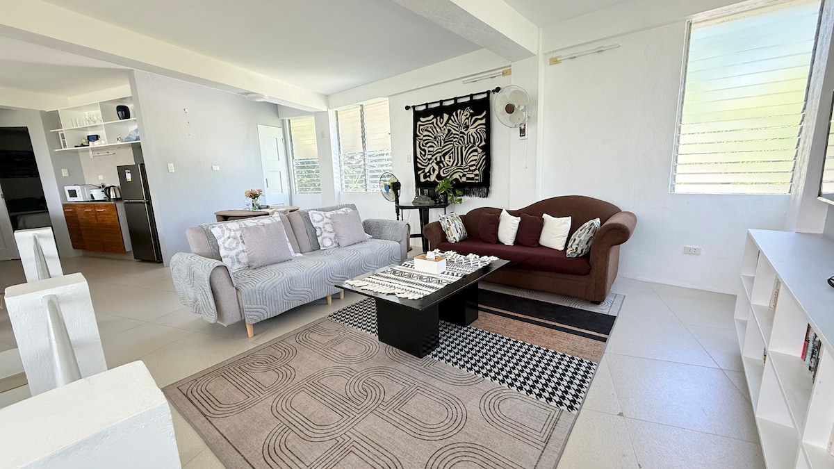 Um encantador apartamento de 1 quarto situado perto do famoso local de mergulho de falésia e das Ruínas de Santa Fé da Ilha Bantayan. Este apartamento muito espaçoso (60 metros quadrados de área) tem uma cozinha completa e uma grande varanda com um ambiente relaxante. Por favor, tenha em atenção que só temos ar condicionado no quarto e ventoinha apenas na sala de estar. Estacionamento gratuito, bom apenas para 1 veículo.