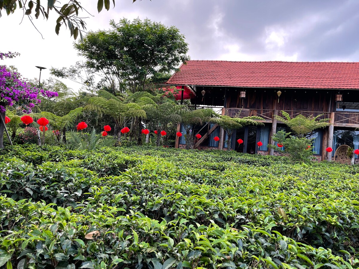 Căn nhà gỗ 2 phòng ngủ,4 giường lớn nằm giữa khu vườn trà xanh,cà phê và nhiều loại trái cây như xoài,mít,chôm chôm,măng cụt ,sầu riêng,chuối ổi,măng cụt,bưởi Đến với nhà nông trại của chúng tôi bạn sẽ được trải nghiệm hái trà và làm trà thủ công và thưởng thức trà do chính tay bạn làm tại nông trại Có bếp riêng cho khách Không gian làm việc yên tĩnh,wifi mạnh Có cho thuê xe máy và tour chở du khách tham quan các làng nghề truyền thống địa phương và các địa điểm du lịch nổi tiếng ở Bảo Lộc