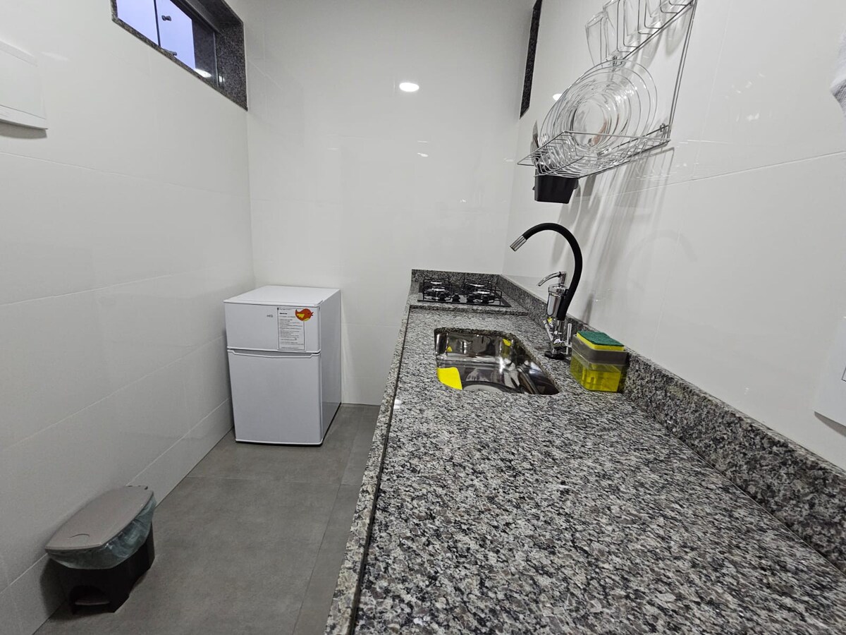 Nosso Loft é um espaço compacto e charmoso, com um design minimalista que maximiza o espaço, criando um refúgio urbano perfeito para quem busca simplicidade, estilo e tranquilidade em um ambiente aconchegante e funcional. 😊 ❄️Ambiente fresquinho 📍Próximo a bancos, lotéricas, supermercados, farmácias, padarias... 🔑Check in fácil com cofre de chaves 📌Estamos a 8 minutos de carro da Fundação Cristiano Varella. ⚠️Atenção: Não disponibilizamos roupas de cama e banho. Temos kit para aluguel.