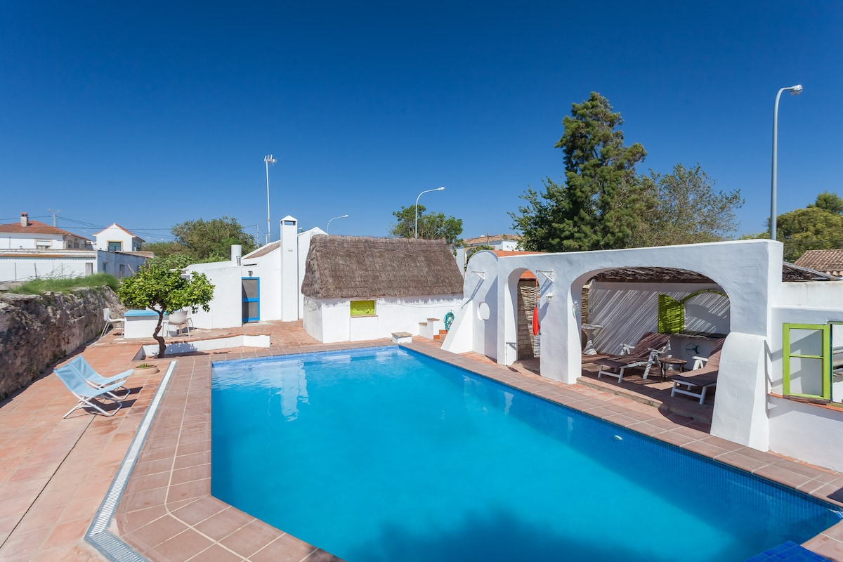 Casa de design espetacular com sala de estar e jantar com cozinha aberta, grande terraço com belas vistas. 2 quartos duplos e 2 casas de banho, em propriedade privada com jardim exuberante e grande piscina , no campo a 10 min. de Vejer e a 15 min. das melhores praias. Licença de alojamento de férias: VTAR/CA/01717