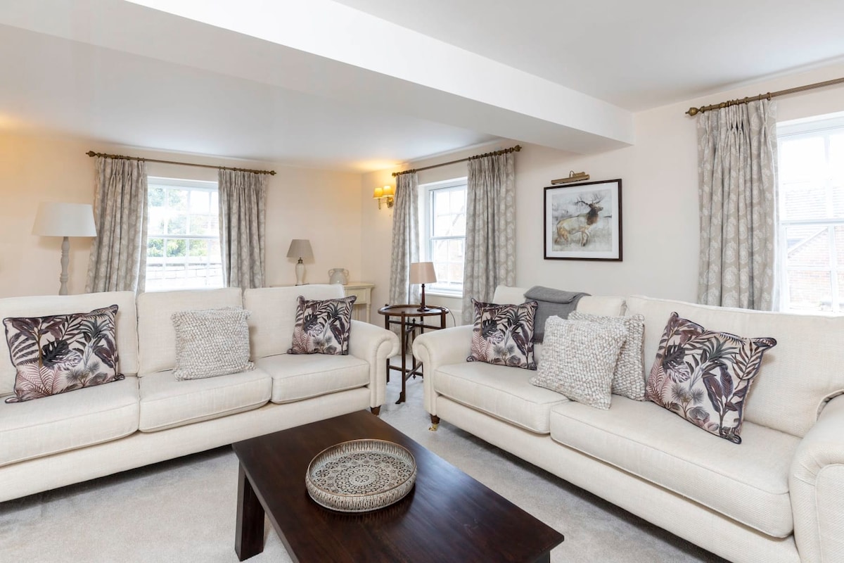 Você vai adorar este lugar único e romântico. Situado atrás de portões elétricos totalmente privados em uma vila tranquila. O Hayloft Barn é um celeiro vitoriano recém-convertido no primeiro andar, onde todos os cuidados foram tomados para manter o caráter, proporcionando conforto e luxo para uma estadia relaxante. Você encontrará uma cama king size, banheira de topo, enorme chuveiro, sofás Chesterfield, TV inteligente e uma cozinha totalmente equipada. Adequado para cães bem comportados, jardim privado totalmente fechado com churrasqueira e lareira.