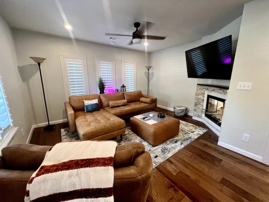 King bed, queen bed, two twin over full bunk beds, and a massive kitchen, sit in dining room and Large living room, this modern getaway is a perfect heaven away from home. Perfect for families, friends or business travelers. Minutes from downtown. 9 mins- 188th Wing Air NG 5 mins- FS Airport 4 mins- Fort Chaffee 3 mins- Arkansas College of Osteopathic Medicine 3 mins- Parrot Island 8 minutes Mercy Hospital includes 6 guests. $20 per guest over 6 for additional cleaning, utilities, and wear.