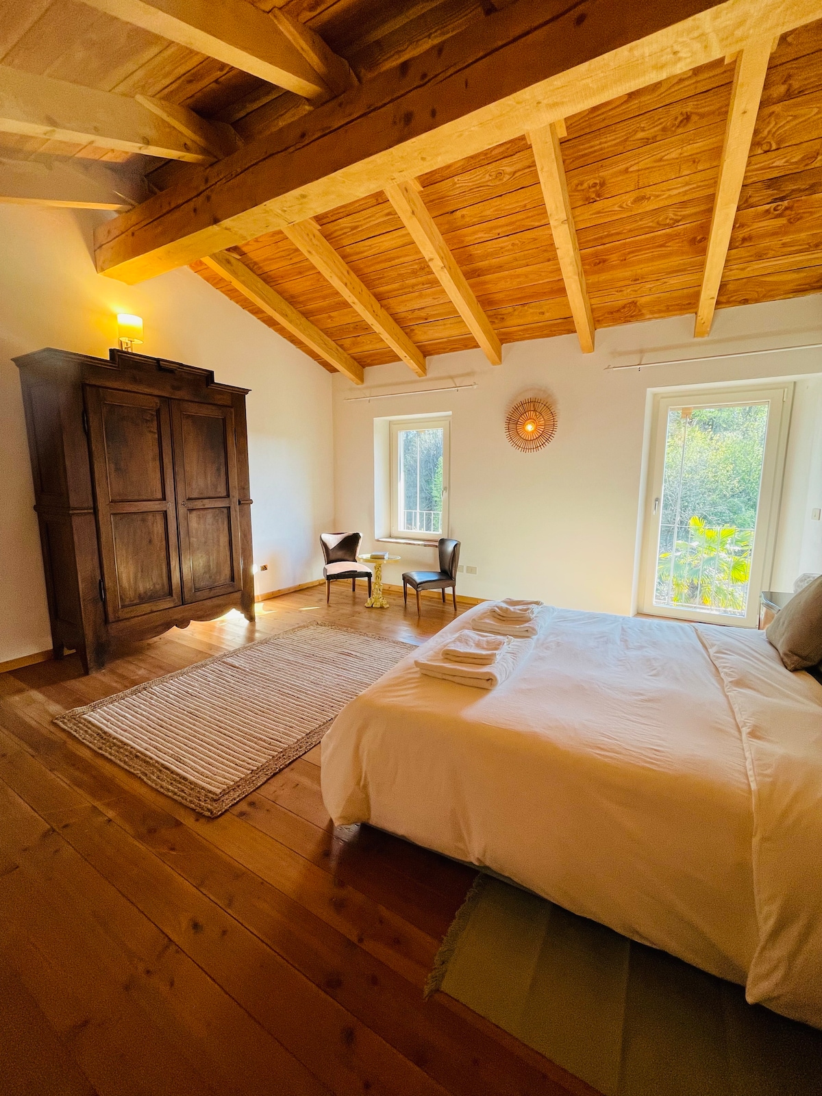 A nossa casa, aninhada entre as árvores, repousa em isolamento pacífico a alguns quilómetros da aldeia mais próxima. Somos o Riccardo, a Cristina, o Lorenzo, a Bianca e a Alice. Escolhemos vir para aqui, para a floresta, para começar a viver uma vida simples, mas gratificante, aprendendo com a natureza. Oferecemos-lhe um sótão cuidadosamente renovado por Riccardo, com uma cama de casal e um sofá-cama (ambos sob claraboias), uma kitchenette, uma casa de banho e uma ampla vista sobre o vale.