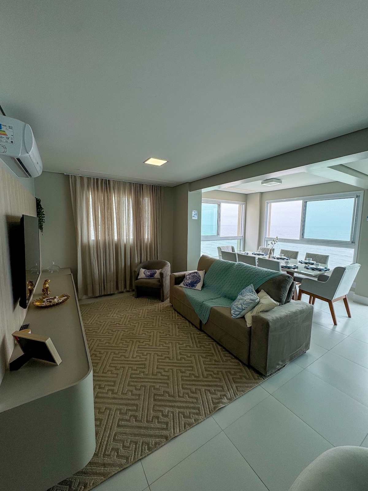 Home Clube completo de frente para o mar. Apartamento finamente decorado, com vista para o mar, novo, com suíte mais dois dormitórios, ampla sacada com churrasqueira a carvão em Home clube que disponibiliza piscina com borda infinita, piscina infantil, piscina aquecida, bar molhado, jacuzzi, academia, sauna, cinema, sala de jogos, brinquedoteca, espaço Pet, espaço Kids, parquinho, redário, quadra de beach tênis e etc.. Acesso exclusivo frente a praia. Cerca de 15KM do parque Beto Carreiro World.