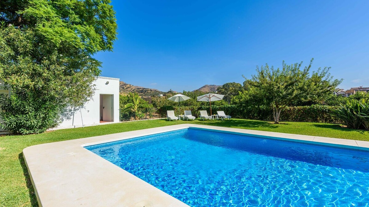 Welcome in this exceptional luxurious finca with Ibiza style. Not for children<14year. Heated pool (11x5m) , lots of shade outdoor areas!! giving infinite views across the valle del sol, exceptional view, ultimate privacy, private host, outdoor covered terrace, large bbq, private parking&carport, electric gated entrance. 3 bedrooms each with ensuite bathroom. Situated on a car friendly track 6 mins drive from Alora town. Even in winter months, the temperature is +10° than official temperature.