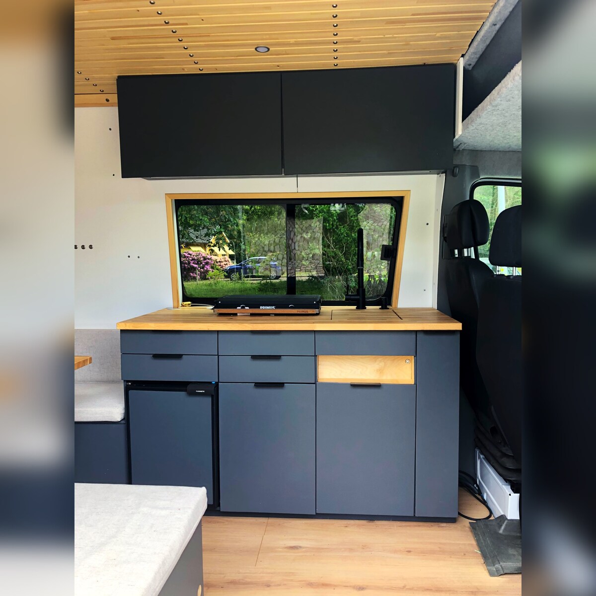 Alugue o meu Mercedes Sprinter totalmente equipado e autoconvertido com uma espaçosa cama de 180 cm x 195 cm. É autossuficiente, com uma cozinha com um lavatório, água corrente, frigorífico, congelador e um fogão a gás móvel. No interior, desfrute de uma área de estar confortável e de um amplo armazenamento. A carrinha oferece tomadas elétricas padrão, uma ventilação no telhado e várias opções de iluminação para noites aconchegantes. Esteja à vontade para entrar em contacto para consultas ou reservas.