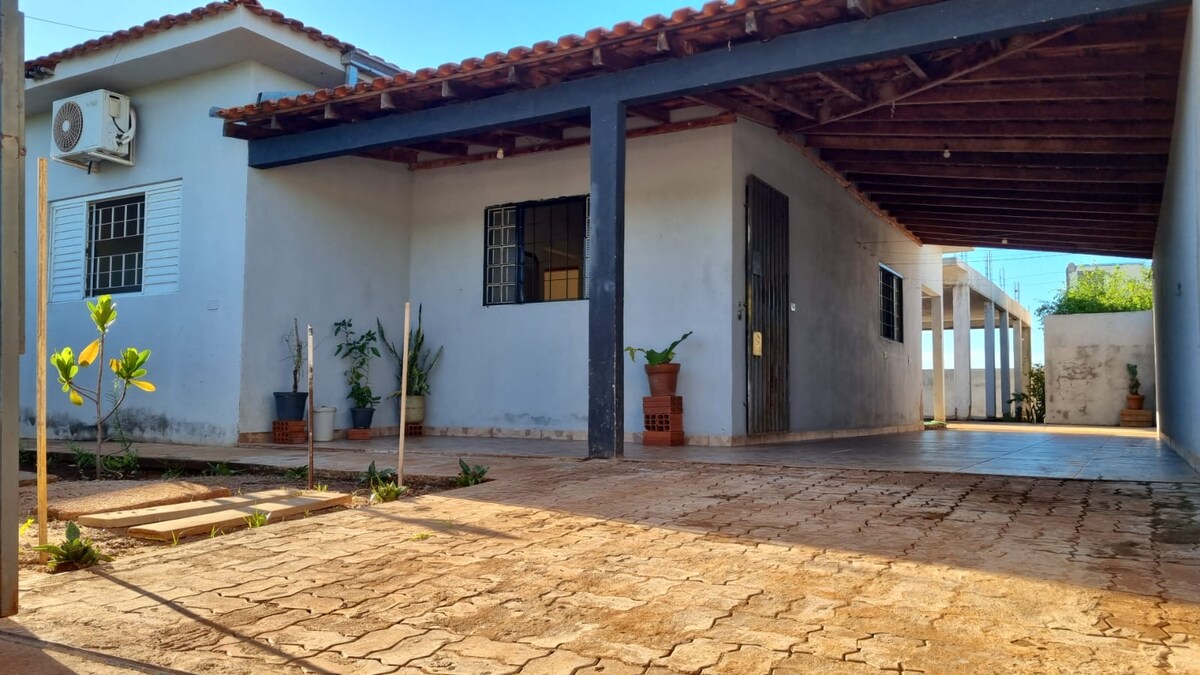Descanse com sua família nesta acomodação tranquila. Espaço aconchegante, 2 quartos com ar condicionado. Lugar tranquilo para descansar e relaxar, próxima do rio (para pescaria ou passeio), muita natureza. Cozinha com geladeira, fogão e utensílios. Wi-fi, voltagens 110 e 220 Câmeras na parte externa da casa Não é permitido fumar dentro da casa. É permitido animais de estimação. A casa possui vaga para 4 carros. Podemos indicar guias para passeio de barco e pesca no Rio Paraná.