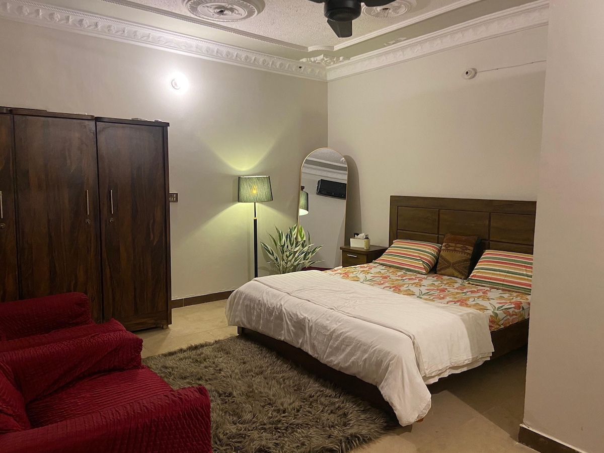 Fuja para o nosso elegante condomínio de casa de família, aninhado no vibrante bairro comercial de Zamzama, em Karachi, a poucos passos de atrações locais e restaurantes. Este espaço cuidadosamente concebido oferece um retiro sereno, perfeito para viajantes que procuram uma casa longe de casa. Regras da casa: - Mantenha os níveis de ruído baixos e respeite os vizinhos - Ajude com tarefas domésticas leves e limpe o que sujar - Não são permitidos casais casados - O animal de estimação é permitido com aprovação prévia e taxas adicionais
