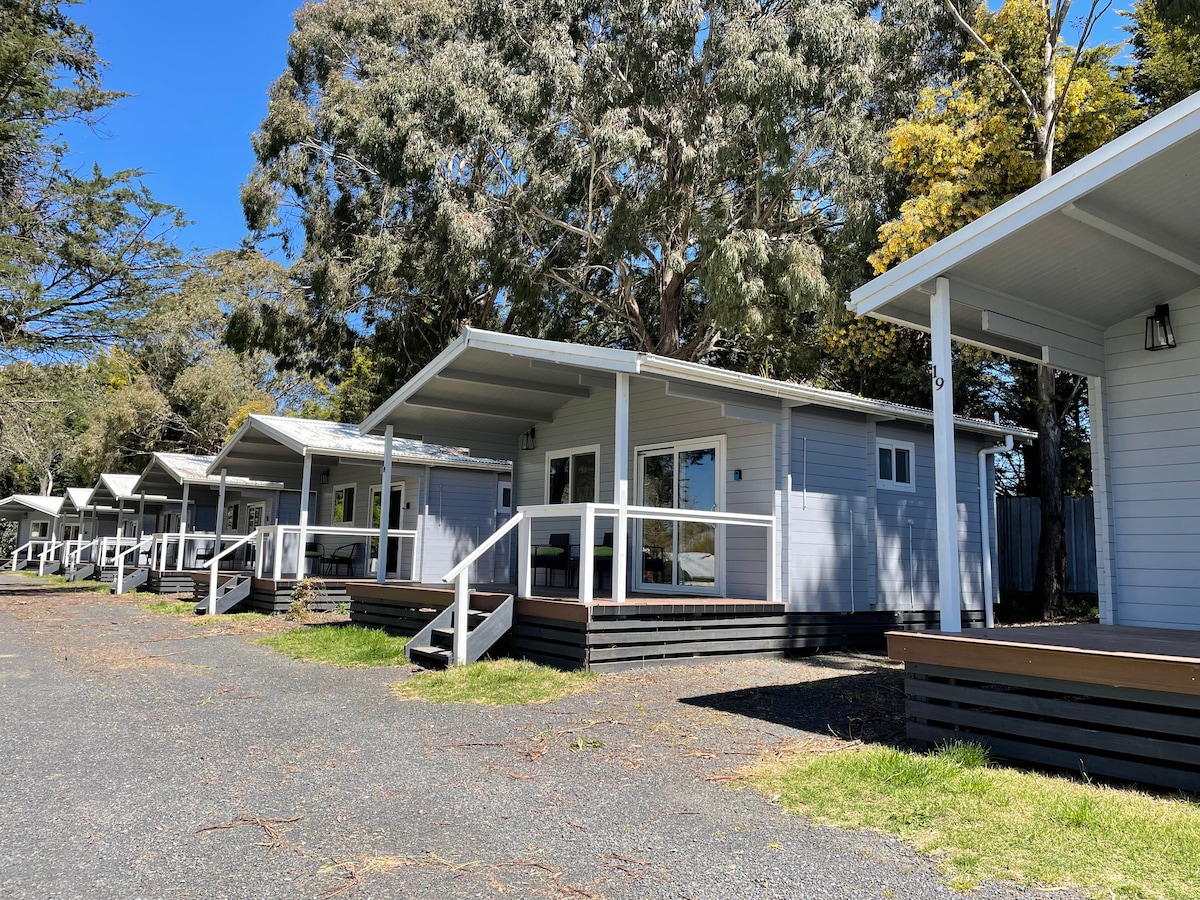 Wake to vineyard & paddock views, soak in your private baths beneath big country skies, and reconnect with the land in our thoughtfully designed, off-grid eco-studios. Each standalone studio offers privacy, panoramic glass, luxury curated interiors, and immersive views of BoxGrove’s working farm; complete with cows, lambs and alpacas. Note: • 'Hot tub' refers to 2 outdoor baths at the studio. • Views may vary slightly; images reflect Studio 1.