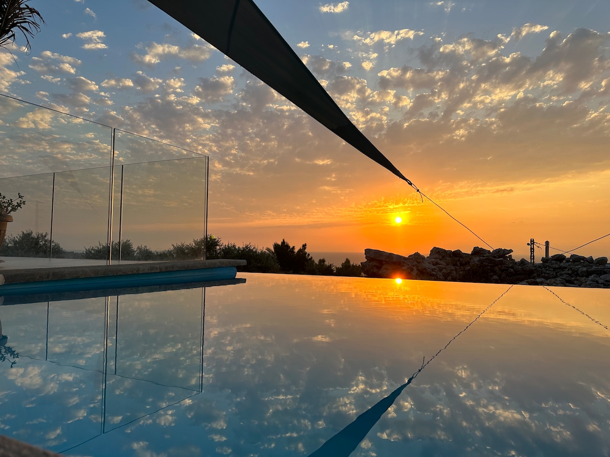 Bem-vindo à nossa luxuosa casa de hóspedes em Thoum Batroun, onde vistas deslumbrantes e pôr do sol de tirar o fôlego esperam por si. Este oásis privado possui um jardim tranquilo, piscina refrescante e lareiras para noites aconchegantes. A apenas 2 minutos de carro do mar e a 5 minutos do antigo souk, a localização é ideal. As comodidades totalmente equipadas e uma área de refeições ao ar livre garantem relaxamento, entretenimento e diversão. Experimente o máximo em luxo e conforto neste belo retiro.