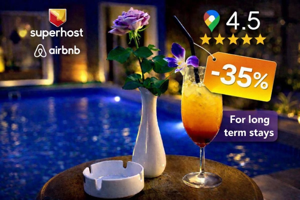 Luxuosa e bonita casa de arte com 4 quartos, com piscina privada, área de estar, cozinha, sala de jantar e jardim. A 10 minutos de carro do centro da cidade de Siem Reap e a 5 minutos dos templos de Angkor. Todos os 4 quartos (3 quartos king-size + 1 quarto principal) são espaçosos, belamente decorados, com comodidades completas como secretária, ventoinha de teto, sofá, TV, ar condicionado, varanda para a piscina, casa de banho grande com chuveiro separado, banheira e sanita A casa localiza-se num local seguro, tranquilo e perto de restaurante, café, supermercado