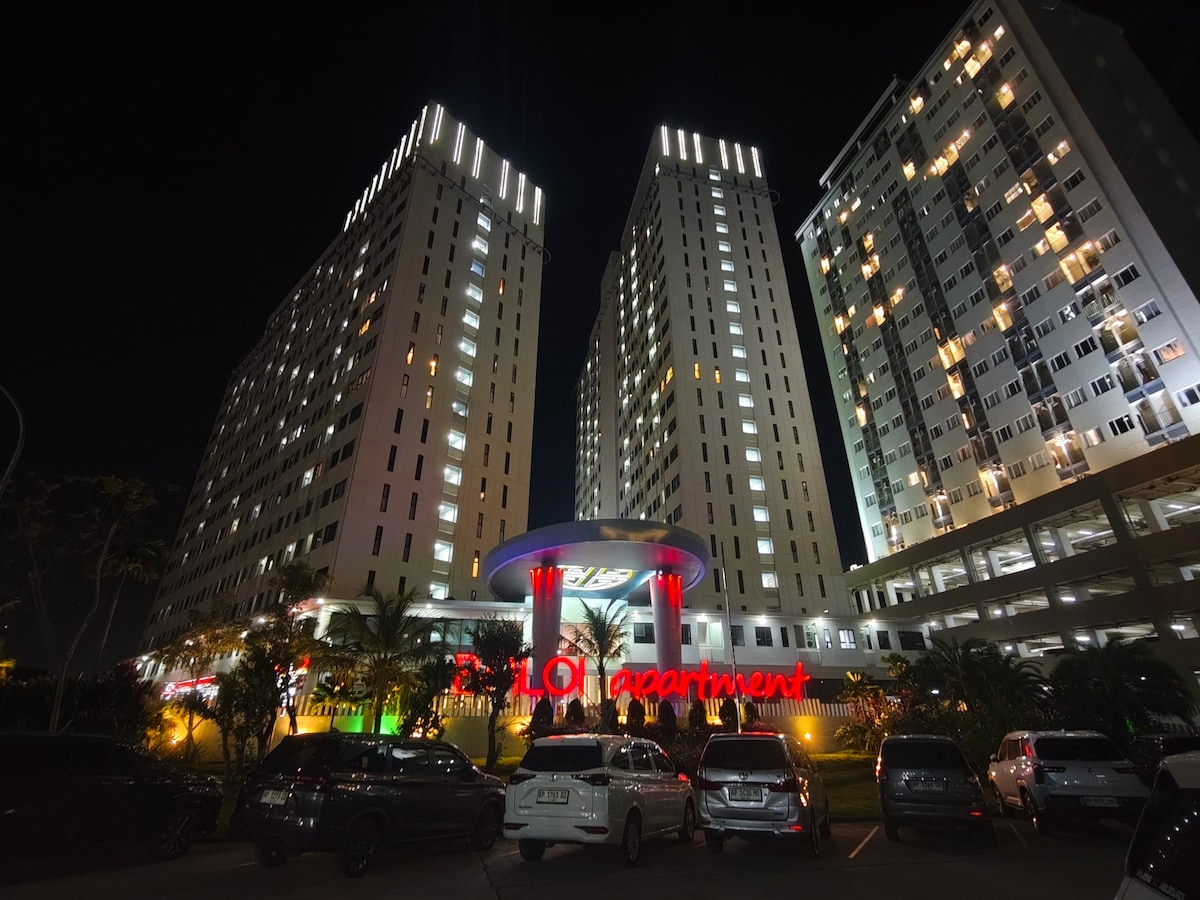 Estúdio totalmente mobilado em Baloi Apartment Batam | 1 cama queen com 1 casa de banho | High Floor City View Estrategicamente localizado no centro da Ilha Batam. Ideal para retiro para viajantes de lazer e negócios ✅ O ginásio e a piscina estão agora prontos para usar Estacionamento 🅿️ gratuito : 📎 BCS Mall (7 minutos de carro) 📎 Grand Batam Mall (7 minutos de carro) 📎 A2 Foodcourt (7 minutos de carro) 📎 Nagoya Hill Mall (12 minutos de carro) 📎 Harbour Bay Ferry Terminal (15 minutos de carro)