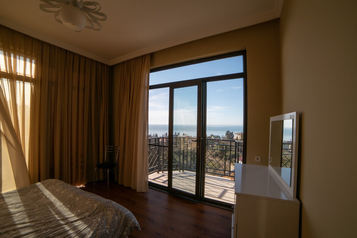 Este espaço único e elegante é o cenário de uma viagem verdadeiramente inesquecível. É ideal para trabalhadores remotos que procuram um ambiente tranquilo e confortável fora da cidade, com vistas deslumbrantes: o mar de um lado e as montanhas do outro. Por favor, tenha em atenção que oferecemos uma receção 24 horas, estacionamento gratuito e serviços de limpeza de quartos a cada três dias. A vista para o mar está disponível em todos os apartamentos.