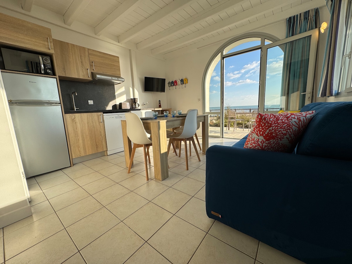 Numa residência de qualidade com piscina, apartamento tipo casulo, 2 pessoas, incluindo uma grande sala de estar com kitchenette e uma sala de estar mobilada, uma casa de banho, no andar de cima: área de quarto com uma casa de banho. Possível 4 com o sofá-cama Varanda com vista para o mar, praia ao pé da residência, estacionamento privado, proximidade de lojas. Observação: o alojamento não é acessível a pessoas com deficiência