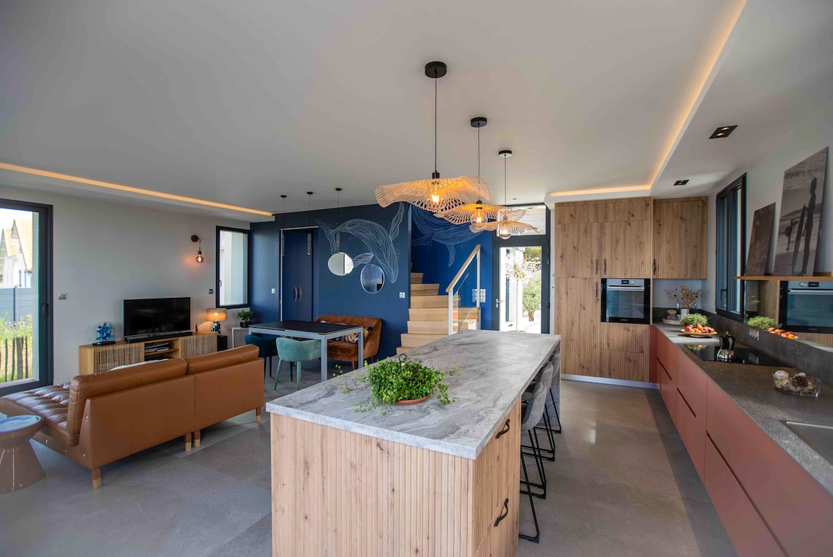 Magnífica vila contemporânea com vista deslumbrante para o mar. Venha passar suas férias com amigos ou familiares! Localizada a 10 metros da primeira enseada, nossa vila de arquiteto nova (2023) tem todo o conforto necessário para torná-la um verdadeiro refúgio de paz. Você pode admirar o pôr do sol no terraço. Confortáveis, nossos quatro quartos duplos contam com roupas de cama de alta qualidade. Nosso jardim ensolarado e fechado tem uma churrasqueira e uma quadra de petanca.