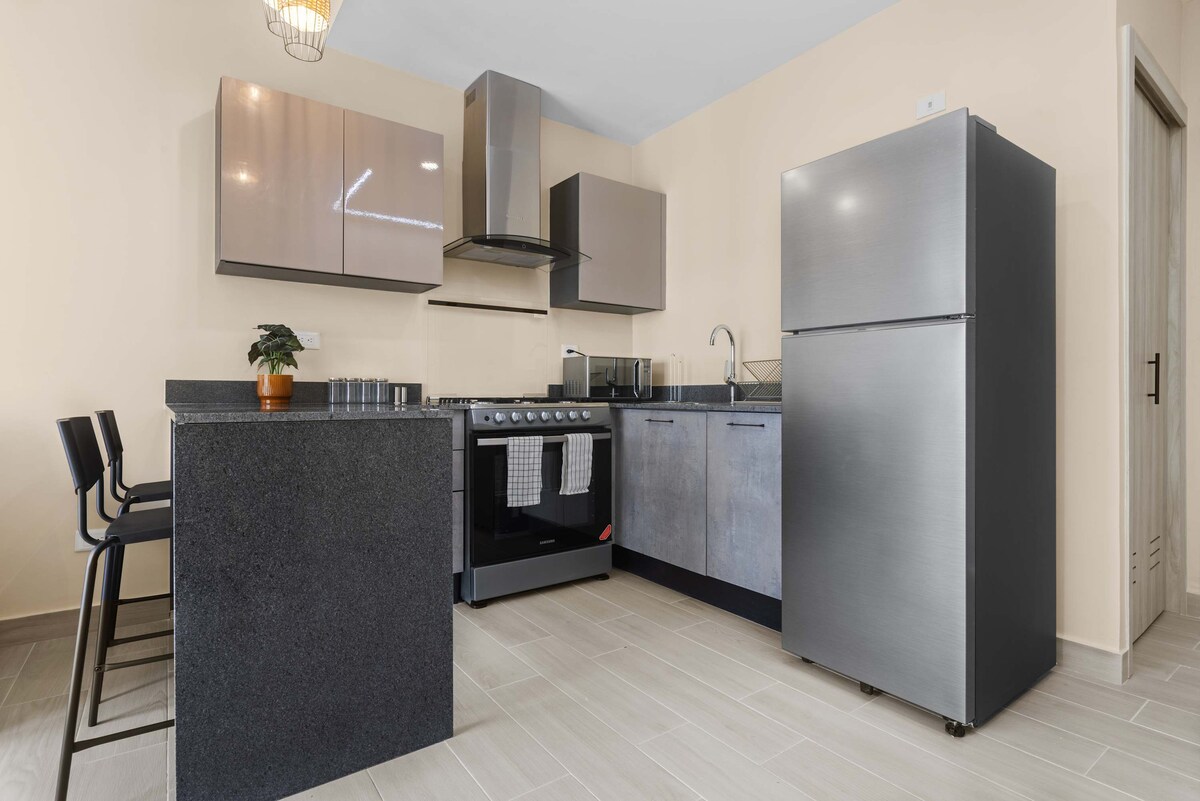 Estúdio moderno e luxuoso com varanda em área residencial apenas para adultos no centro de Punta Cana com pequeno-almoço incluído. Desfrute de uma cama king size, cozinha completa, máquina de lavar roupa, secadora, Wi-Fi e cofre. Residencial oferece piscina, ginásio, restaurante, quadra de padel e espaço de coworking num ambiente exclusivo. Localização ideal a 1 km de centros comerciais, lojas, cinema e restaurantes. A apenas 15 minutos do aeroporto PUJ.