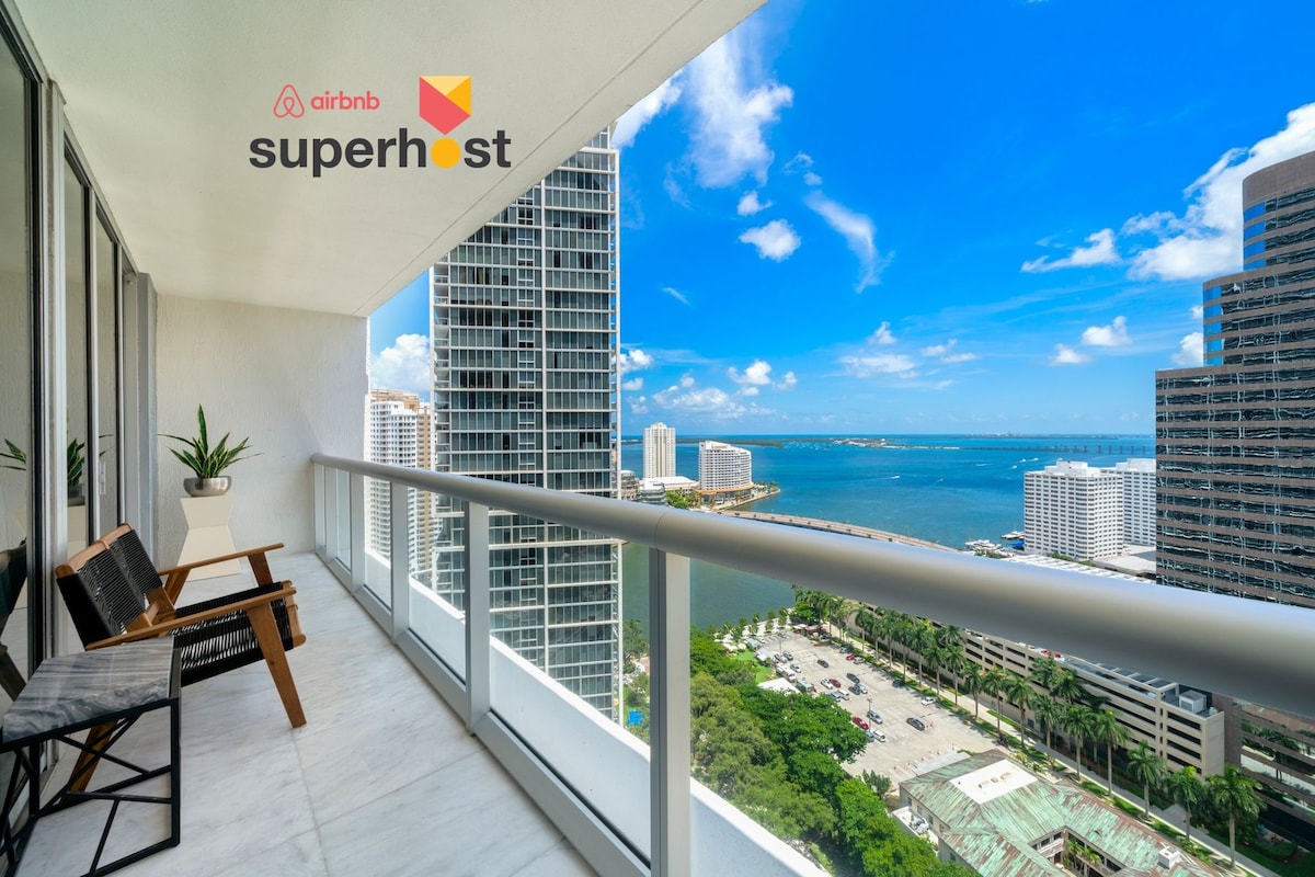 * Vistas incríveis*, *Localização de topo* Apartamento de 2 quartos com vistas deslumbrantes, varanda aberta (sem construção) do 47º andar do luxuoso Icon Brickell. Mesmo ao lado da bela Biscayne Bay, Brickell Key, restaurantes, discotecas e lojas. Caminhada fácil até ao centro de Kaseya e ao BayFront Park. Este condomínio de luxo romântico com cozinha completa oferece uma vista panorâmica da baía e do horizonte de Brickell, veja o nascer e o pôr do sol da sua varanda, sala de estar e quarto principal.