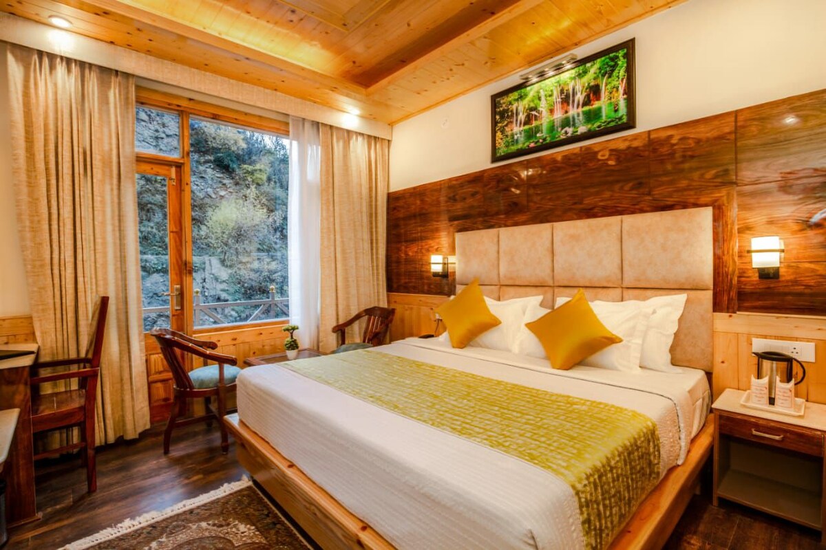 Newly Built Luxury wooden Cottage offers a comfortable stay with spectacular hampta view , river along side cottage and valley view. It's surrounded by greenery all around.
