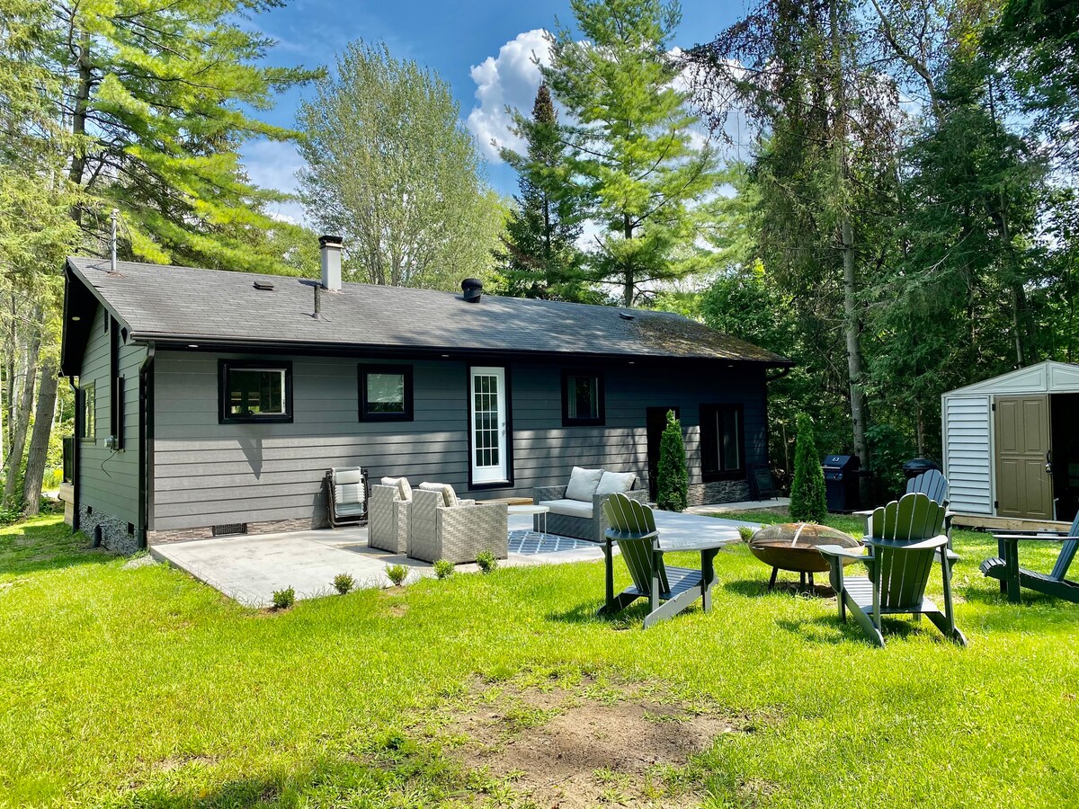 Aninhado no coração de Muskoka, este chalé de madeira artesanal fica ao lado de um lago cênico alimentado por nascentes, cercado por 8 acres de floresta privada. A apenas 10 minutos de Bracebridge, desfrute da vida serena do lago e da beleza natural, mantendo-se perto das comodidades da cidade, lojas locais e restaurantes. Desfrute de relaxamento no cais privativo, confortos aconchegantes na cabana e fogueiras ao ar livre. Um passe de um dia para o Parque Provincial está incluído (*depósito de segurança necessário) para aventura adicional. Venha relaxar, recarregar as energias e se reconectar.