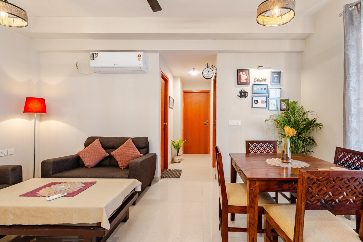 Welcome to Trovero Suites! Located in the heart of Greater Noida, Near Expo Mart (8 km) What You’ll Love: ✔ Private Balcony – Enjoy the Mesmerizing House Row view ✔ Prime Location – Close to top attractions, restaurants ✔ Modern Comfort – A beautifully furnished space with a comfy bed, cozy seating, and stylish decor ✔ Fully Equipped Kitchen – Cook your favorite meals with ease ✔ Fast WiFi & Smart TV – Stay connected and entertained. ✔ Serene Ambiance – A peaceful Luxurious and private retreat