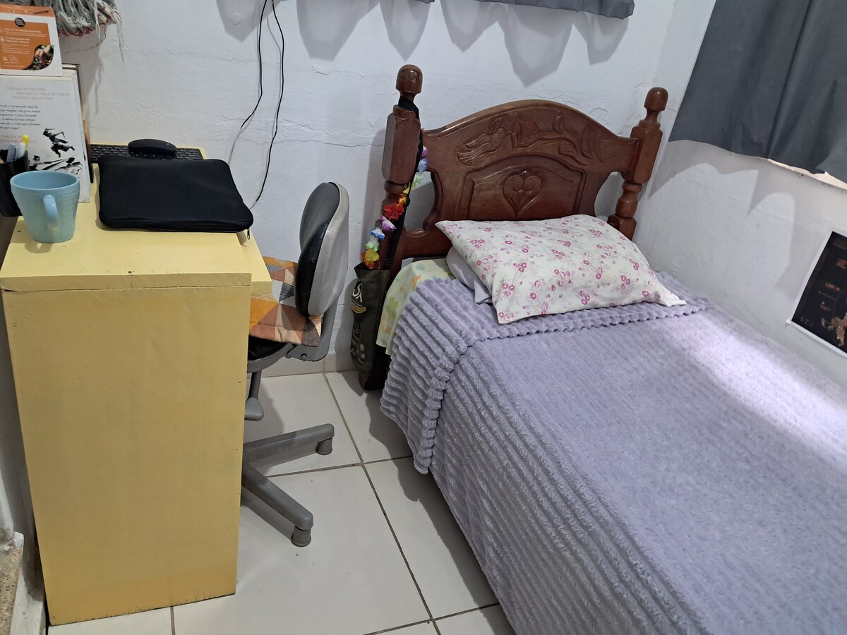 Abrace a simplicidade neste lugar tranquilo e bem localizado. Ambiente familiar. A 10 min do Aeroporto Internacional de Belém e do Hangar Centro de Convenções. Restaurantes (churrascaria, sushi, sanduícheria artesanal, pizzarias e esfirraria), sorveteria, doceria, inclusive chocolateria famosa, farmácias e lavanderias, barbearias e salões de beleza próximos. Tudo o que você precisa a poucos metros daqui. Ambiente com quarto, cozinha, banheiro privativo e área de ventilação.