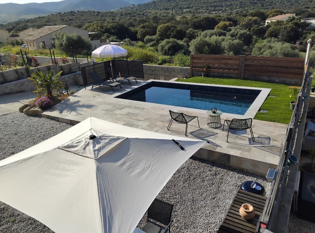 Emplacement de qualité la villa bénéficie d’une positon dominante nous louons une partie de notre maison de 50 m2 qui est climatisée. La terrasse surélevée privée avec une magnifique vue un ravissant bassin bali privé non chauffé oscillant entre vert émeraude et lagon bleu admirer le couché du soleil. Vous êtes à 5mn à pied du village et restaurants,5mn en voiture cabane de fruits et légumes..., 10mn des plages et d’Ile Rousse. 🙂LE LOGEMENT N’EST PAS ADAPTÉ à l’accueil d’enfants en bas âge.