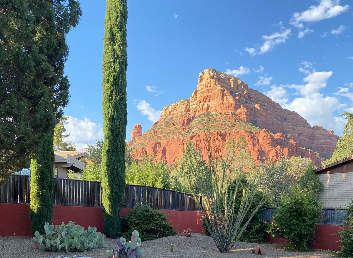 Desfrute de vistas majestosas das famosas Sedona Red Rocks no luxo da sua própria vila privada. A poucos passos da icónica Capela da Santa Cruz, para caminhadas populares. A casa apresenta uma estética moderna de meados do século, 1 cama king, 1 sofá-cama com 2 casas de banho, 2 salas de estar espaçosas, cozinha, escritório, espaço de refeições ao ar livre com churrasqueira. Depois de um dia no deserto, a uma curta distância, dirija-se ao centro de Sedona, busque galerias de arte incríveis e explore restaurantes locais! TPT# 21426328/ 1.800 Sq. Ft.